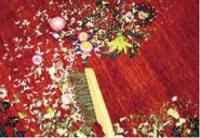 清掃は頻繁にする必要はありません。密に織られた絨毯のパイル(毛糸)は約30~40度の角度があるので埃が入りにくく、散らばったゴミも一掃きで写真のように掃けます。ほうきや掃除機を軽くかけて下さい。また静電気を帯びないので汚れにくく、15年に一度ぐらい汚れたなと思ったら専門店でクリーニングを。尚、最近の掃除機は吸引力が強いので、特にフリンジ(房)の部分はかけすぎに注意して下さい。